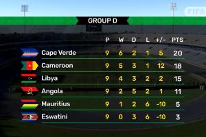 全文摘要:世預(yù)賽非洲區(qū)D組末輪在即,佛得角3-3戰(zhàn)平利領(lǐng)跑,下輪贏球即歷史性首進(jìn)世界杯;喀麥隆2-0勝暫居第二,憑凈勝球優(yōu)勢保留晉級(jí)希望。小組第一直通世界杯,四支最佳小組第二將進(jìn)附加賽。