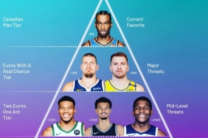 注:其他得到選票的球員是班凱羅、恩比德、特雷-楊;三球則不在該排名中;繪圖者是ESPN數(shù)據(jù)專家Kirk Goldsberry。