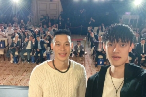 今天,媒體人勇方方曬出了林書豪和曾凡博的合照,并寫道:“嚯!兩任首鋼7號(hào)相聚了!”