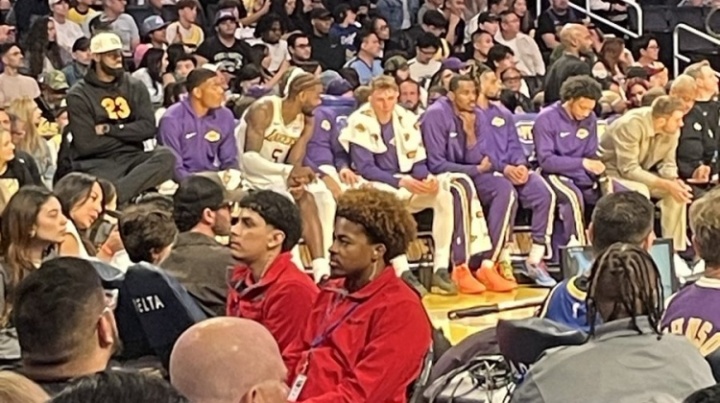 體育資訊10月13日訊 NBA季前賽,湖人主場(chǎng)迎戰(zhàn)勇士,詹姆斯坐在了更高的椅子上,但蹺了個(gè)二郎腿。