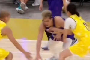 比賽當(dāng)中,郭艾倫與女籃前國手趙爽拉開單挑,一波蝴蝶穿花運(yùn)球甚至晃倒趙爽,隨后躲開曹芳干擾上籃打進(jìn)。