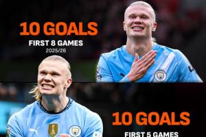 哈蘭德本場比賽的第1個(gè)進(jìn)球幫助他本賽季的聯(lián)賽進(jìn)球達(dá)到了10個(gè),成功上雙,而據(jù)統(tǒng)計(jì),能夠在英超前8輪比賽中實(shí)現(xiàn)進(jìn)球上雙的球員只有一位,正是哈蘭德。
