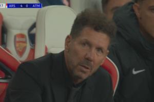 體育資訊10月22日訊 阿森納vs馬競進(jìn)入補(bǔ)時(shí)前,鏡頭給到西蒙尼,此時(shí)馬競0-4落后!
