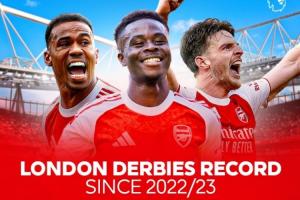 體育資訊10月24日訊 本輪英超阿森納將在主場(chǎng)迎戰(zhàn)水晶宮,今日英超官方社媒發(fā)布圖片,統(tǒng)計(jì)英超七支倫敦球隊(duì)自2022/23賽季以來倫德德比積分榜,阿森納以87分高居榜首,切爾西第二熱刺第三。