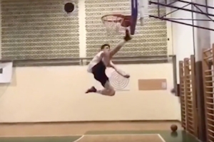 舍什科說:“是的,那確實是我。挺搞笑的,因為當時球卡在籃框,我也不知道為什么就想用腳去把它夠下來。這可不是每個人都能做到的?!?/p>