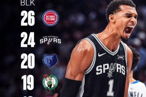 體育資訊10月28日訊 歐媒BasketNews報(bào)道,賽季至今文班出場三場比賽,共計(jì)送出18次封蓋,場均可以貢獻(xiàn)6次封蓋。