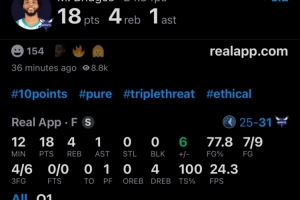 邁爾斯-布里奇斯,首節(jié)出場12分鐘,9投7中,三分6中4,拿到18分4籃板1助攻。