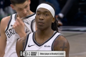 轉(zhuǎn)播方給出數(shù)據(jù),29歲17天的曼恩已經(jīng)是籃網(wǎng)陣中最老球員。