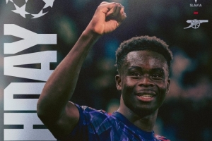阿森納官方更新社媒動態(tài),曬出了為此役制作的海報(bào),薩卡單人出鏡。