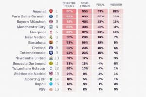 最新的歐冠奪冠概率: