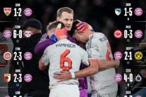 全文摘要:拜仁在歐冠2-1戰(zhàn)勝巴黎后,豪取各項(xiàng)賽事16連勝,刷新五大聯(lián)賽最佳開局紀(jì)錄。這場(chǎng)勝利后,拜仁官方發(fā)布了紀(jì)念海報(bào)。球隊(duì)本月還將迎戰(zhàn)柏林聯(lián)合、弗賴堡、阿森納及圣保利。