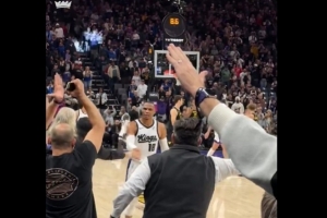 賽后,威少轉(zhuǎn)發(fā)了自己和場邊球迷慶祝的視頻,并寫道:“Why not(威少名言)?!”