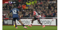 第34分鐘,阿森納后場反擊,梅里諾回做,被扎卡放倒!隨后前阿森納隊長扎卡對仍倒在地上的梅里諾貼臉怒噴!