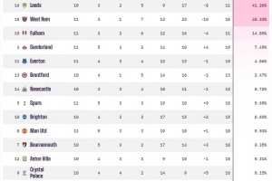 全文摘要:英超升班馬表現(xiàn)分化。伯恩利、利茲聯(lián)和桑德蘭狀態(tài)尚可,但狼隊戰(zhàn)績慘淡,OPTA預測其降級概率高達90.31%。桑德蘭表現(xiàn)驚艷,高居第4,降級概率僅7.49%。