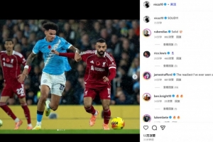 奧賴利也通過社媒曬出自己對位薩拉赫的比賽照,并配文“硬!”表達自己的興奮之情。