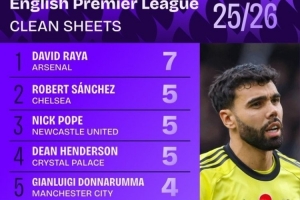 本賽季英超零封榜: