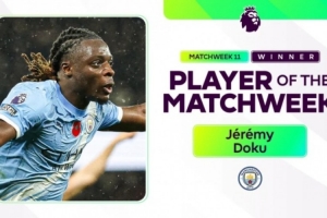 體育資訊11月11日訊 英超官方消息,經(jīng)投票曼城邊鋒多庫當選本輪最佳球員。