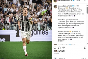 伊爾迪茲在社媒也曬出慶祝進(jìn)球照片,配文寫道:“這是多棒的一個(gè)月!很榮幸當(dāng)選意甲8月最佳球員以及國家德比最佳,很感激大家對(duì)我的支持!”