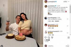 迪巴拉社媒曬出與懷孕妻子一起慶祝的合照,配文:“感謝大家的生日祝福,最棒的禮物即將到來(lái),我已迫不及待!愛(ài)你們所有人?!?/p>