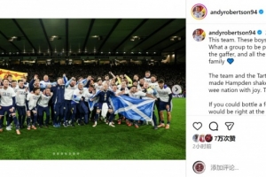 體育資訊11月20日訊 蘇格蘭隊長羅伯遜更新社媒動態(tài),表達(dá)了直通世界杯的激動之情。