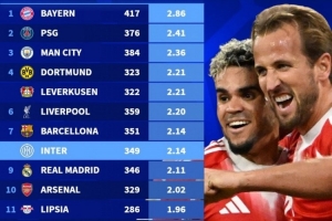 體育資訊11月20日訊 德國轉(zhuǎn)會市場統(tǒng)計了近5年球隊在五大聯(lián)賽中的場均進球數(shù)量,并列出榜單,拜仁2.86球居首,巴黎、曼城二三位。