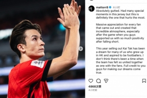 毫無疑問,現(xiàn)在非常失落。為中國香港隊(duì)出戰(zhàn)經(jīng)歷了一些特別的時(shí)刻,但此刻最讓人神傷。