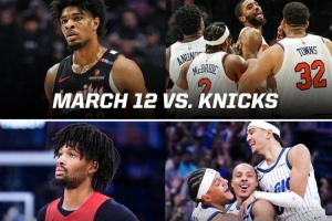 3月13日,尼克斯客場114-113加時戰(zhàn)勝開拓者,米卡爾·布里奇斯完成弧頂干拔三分壓哨絕殺。