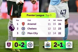 體育資訊11月23日訊 英超第12輪多場(chǎng)戰(zhàn)罷,切爾西贏球后反超輸球的曼城升至英超第2。