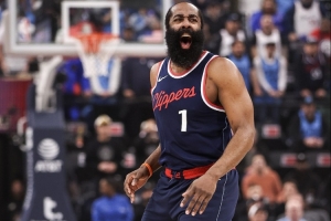全場(chǎng)比賽,快船球星哈登出戰(zhàn)35分鐘,26中17,三分16中10得到55分3板7助攻1搶斷。