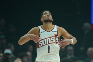 上半場(chǎng),太陽后衛(wèi)布克出場(chǎng)19分鐘7投3中,三分4中2、罰球2中1拿到9分2籃板3助攻1搶斷,有3失誤,正負(fù)值-5。