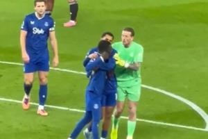 蓋耶染紅后情緒激動(dòng)喋喋不休,皮克福德和恩迪亞耶抱住安撫,蓋耶仍在揮拳似乎要打人。
