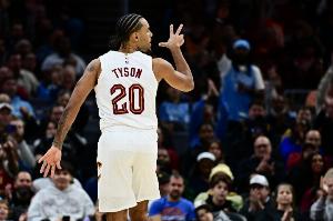 本場比賽,騎士球員泰森表現(xiàn)出色,進攻端十分高效籃板也上雙,在31分鐘的時間里,投籃13中10,三分球5中4,罰球3中3,砍下27分11籃板4助攻1搶斷的數(shù)據(jù),正負值+23。