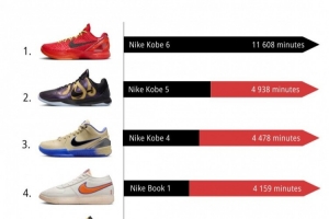 體育資訊12月2日訊 球鞋媒體kixstats統(tǒng)計了11月份NBA球員上腳球鞋的總時長排行,其中科比的三款球鞋霸榜前三,Kobe 6更是斷檔第一。