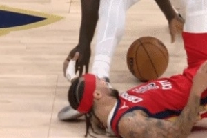 GIF-阿爾瓦拉多倒地拼搶時(shí)受傷,痛到在地上打滾