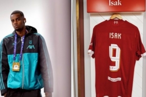 利物浦官方曬出伊薩克伊薩克神情嚴(yán)肅的照片,同時(shí)也曬出了瑞典前鋒在更衣室里的球衣照片對本場比賽進(jìn)行預(yù)熱。