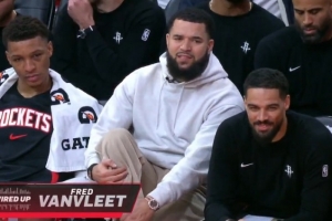 在比賽中,狄龍和在替補(bǔ)席上的范弗里特互動,后者說道:“40分,你有得過40分嗎?讓我見識一次,讓我們看看?!?/p>
