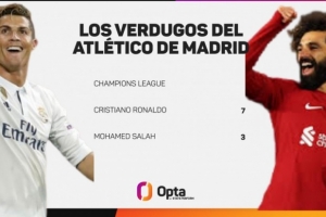 在歐冠賽場上,薩拉赫7次面對馬競打進(jìn)3球。在這項賽事中,薩拉赫面對床單軍團(tuán)的進(jìn)球數(shù)量僅次于C羅(12場7球)。