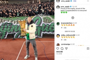 賽后國安外援斯帕吉奇更新社媒,曬出自己手捧足協(xié)杯冠軍獎杯與球迷合影的照片,并配文寫道:“為這份榮譽感到自豪,為球隊感到自豪!祝賀與這個冠軍相關(guān)的每一個人!”