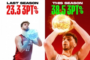 阿爾佩倫·申京本賽季三分球命中率大幅提升,解鎖了全新的比賽風(fēng)格。??