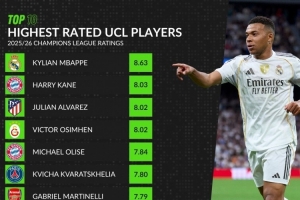 體育資訊12月11日訊 WhoScored統(tǒng)計了本賽季球員在歐冠比賽中的場均評分,并列出評分最高榜單,姆巴佩8.63分居首,凱恩8.03分次席。