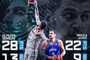 在歐錦賽乏味的小組賽征程中,今天凌晨終于又出現(xiàn)了一場(chǎng)拳拳到肉的比賽:此前都4場(chǎng)全勝的塞爾維亞和土耳其在小組賽收官戰(zhàn)相遇,而約基奇和申京的直接對(duì)位更是成為了比賽的最大看點(diǎn)。