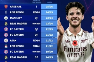體育資訊12月11日訊 本賽季阿森納在歐冠6戰(zhàn)全勝,德轉(zhuǎn)也盤點(diǎn)了歐冠歷史前6場全勝球隊(duì)最終成績,其中皇馬、拜仁曾拿到冠軍,具體如下: