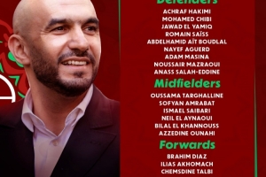 體育資訊12月11日訊 非洲杯即將來臨,奪冠熱門摩洛哥公布了參賽大名單,阿什拉夫、布拉希米·迪亞斯、馬茲拉維領(lǐng)銜,布努、阿姆拉巴特入選。