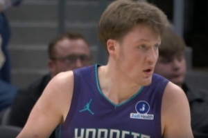 克尼佩爾妙傳卡爾克布倫ner空接得手,隨即命中三分,表現(xiàn)游刃有余。