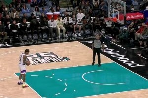 GIF-韋爾斯撲防基昂特·喬治三分,被吹罰一級惡意犯規(guī)
