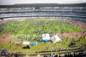 據(jù)印度媒體報道,由于賽事組織方的管理混亂和安全漏洞問題,梅西不得不提前結(jié)束繞場,球迷對當(dāng)?shù)毓賳T發(fā)出噓聲、丟水瓶,最終大批球迷沖進(jìn)場內(nèi)對體育場進(jìn)行破壞。