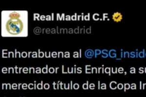 皇馬官方社媒也送上祝賀:“祝賀巴黎圣日耳曼俱樂(lè)部、主席納賽爾·阿爾赫萊菲、主帥路易斯·恩里克、球員以及所有球迷,你們完全配得上洲際杯冠軍?!?/p>