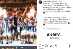 國(guó)際足聯(lián)主席因凡蒂諾社媒曬出視頻,回顧這場(chǎng)經(jīng)典比賽,他寫(xiě)道:“三年前的今天,史上最精彩的世界杯決賽之一,阿根廷vs法國(guó)——吸引了全世界的目光,最終阿根廷隊(duì)舉起了那座標(biāo)志性的獎(jiǎng)杯!”