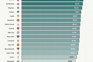切爾西的陣容變化最大,馬雷斯卡精心策劃的輪換政策是為了應(yīng)對潛在的67場比賽。他在聯(lián)賽中使用了25名球員,進(jìn)行了47次首發(fā)陣容變化。只有門將羅伯特·桑切斯在所有16場比賽中都出場,切爾西的陣容使用顯示了更多的多樣性。傷病也導(dǎo)致了這種不穩(wěn)定性,切爾西的陣容穩(wěn)定性評分最低(74.7%),部分原因是他們被出示了五張紅牌。此外,切爾西在贏得世俱杯后縮短了季前賽,這也影響了他們的穩(wěn)定性。