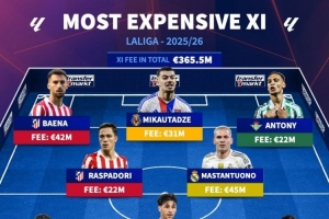 西甲今夏最貴引援陣容(轉(zhuǎn)會費(fèi))